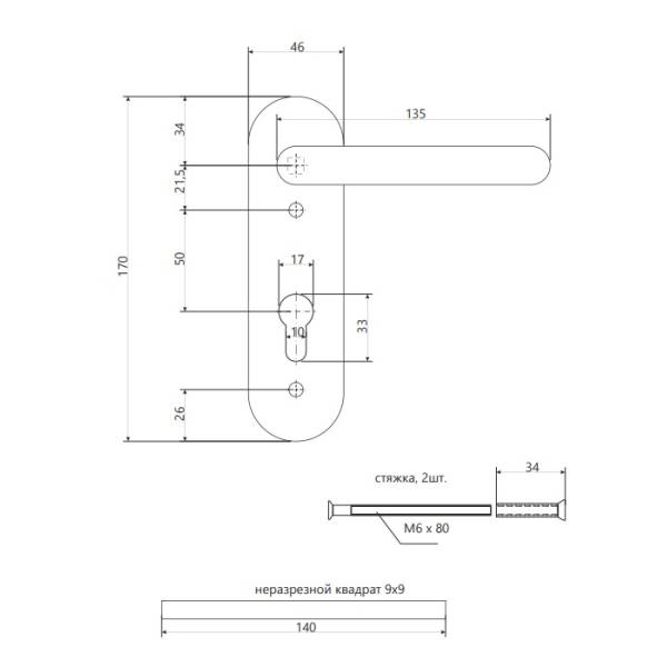 Ручка для противопожарных дверей на планке AVERS HP-72.1303-BL (Spring).