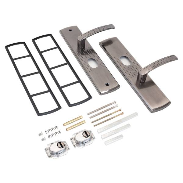 В комплект входят две ручки, винтовые стяжки, пластиковые прокладки и квадратный штырь (8х8 мм) 110 мм, комплекты стержней для автоматических и не автоматических замков.