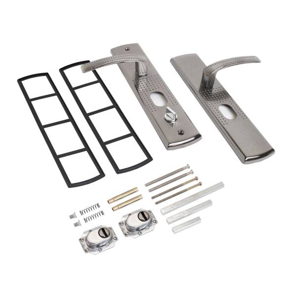 Ручки для китайских дверей отличаются по формам ручек, наличию или отсутствию перфорации, наличию или отсуствию подсветки, способу запирания двери - ручка-автомат, неавтомат.