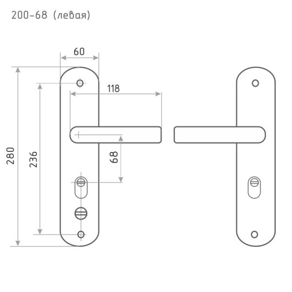 Дверная ручка с планкой для входной двери Нора-М 200-68 ЕСО межосевое 68 мм.