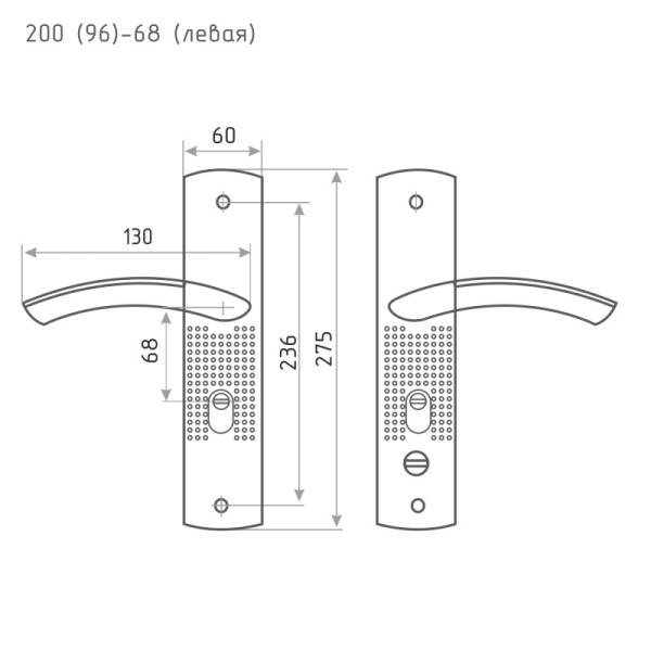 Ручка дверная на планке 200(96)-68 мм левая мат.никель/черн. никель Нора-М