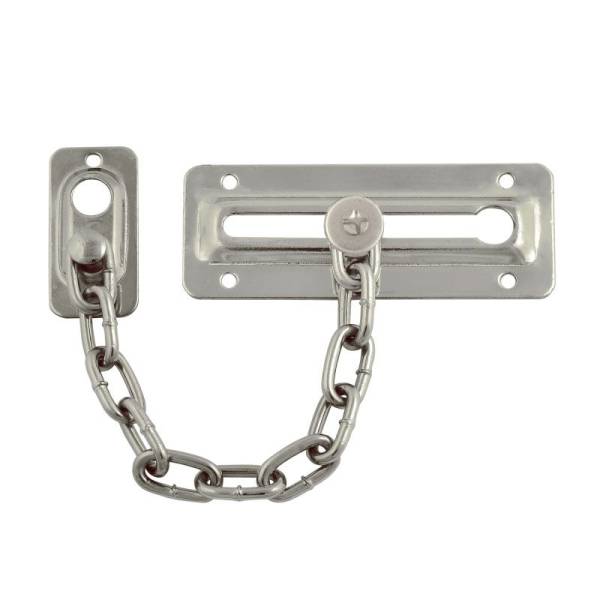 Длина дверной цепочки №4 92 мм, материал изготовления сталь, гальваническое покрытие, цвет покрытия матовый хром (серебро).