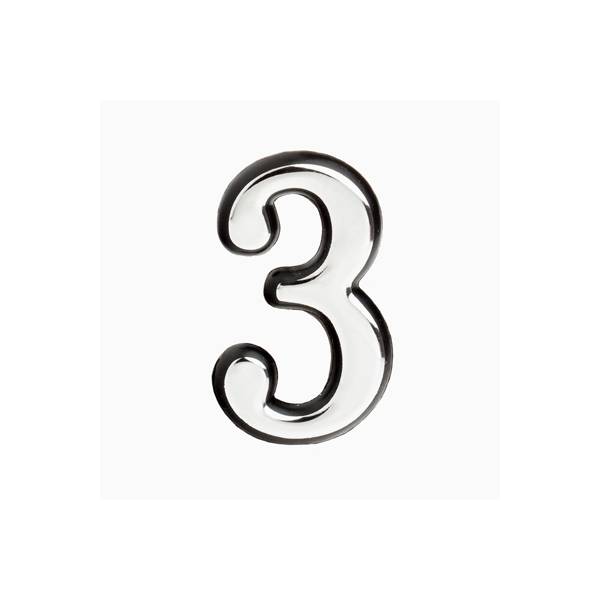 Цифра дверная "3" БОЛЬШАЯ на клеевой основе (хром) Аллюр