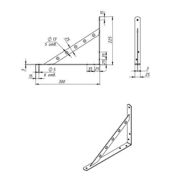 Кронштейн усиленный 300х225 полимер черный Металлист