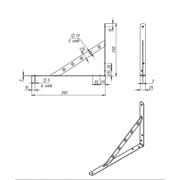 Кронштейн усиленный 350х250 полимер черный Металлист