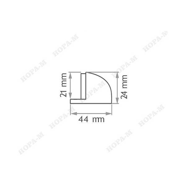 Технические характеристики дверного упора 100 Нора-М: - тип установки напольный; - материал корпуса силумин; - материал упора резина; - покрытие гальваническое; - цвет покрытия хром (серебро). Высота корпуса дверного упора 24 мм, диаметр 44 мм.