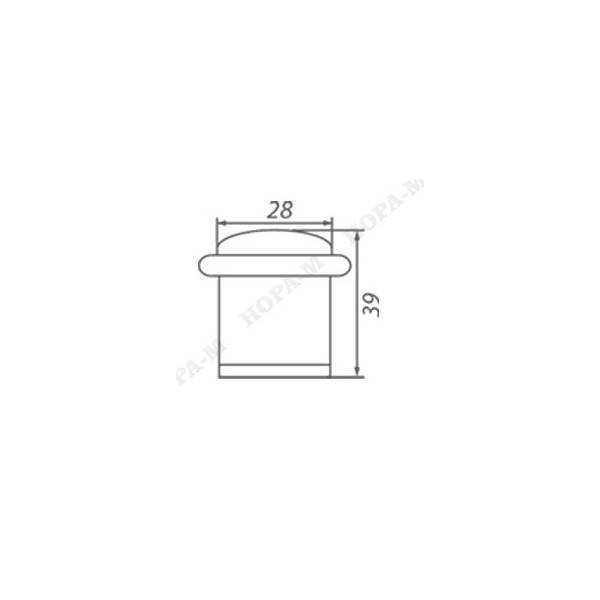 Технические характеристики дверного ограничителя 101 Нора-М: тип установки напольный; материал корпуса ЦАМ; материал упора резина; покрытие гальваническое; цвет покрытия золото. Высота корпуса 39 мм, диаметр 28 мм.