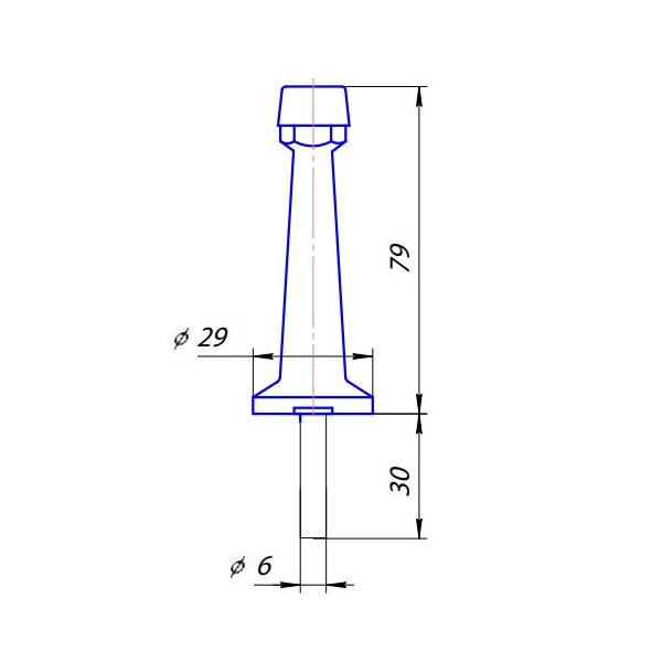 Технические характеристики: Материал корпуса дверного упора - сплав ЦАМ; Высота упора 79 мм; Дополнительная фиксация отсутствует; Тип установки - напольный/настенный. Скрытые отверстия под крепления.