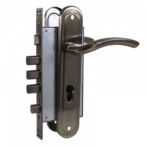 В дверной замок может быть установлен цилиндровый механизм европейского стандарта. Межосевое расстояние 80 мм, удаление ключевой планки 60 мм.