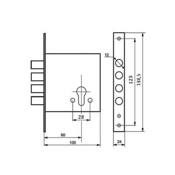Корпус замка верхний 335Ц-4Р (2креп.отв) цилиндровый для китайских металл.дверей (Китай)