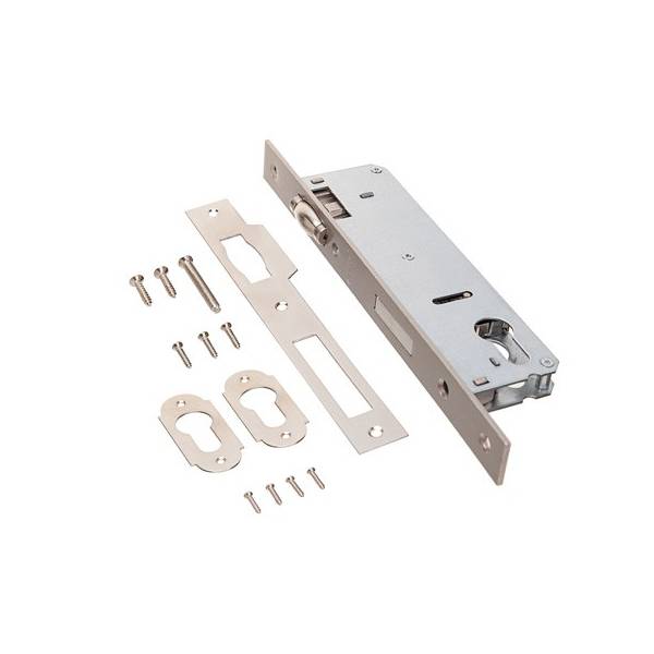 Технические характеристики: Межосевое расстояние 85 мм, ширина лицевой планки 23 мм. Крепление - лицевая планка. Ригель прямоугольный. Вылет ригеля 15 мм. Удаление ключевого отверстия 35 мм. Механизм секретности цилиндровый. Цилиндром не комплектуется. Роликовая защелка. Запирание неавтоматическое. Покрытие лицевой планки гальваническое. Цвет покрытия никель (хром). Линия продукции Апекс Standard.