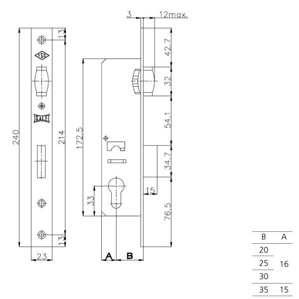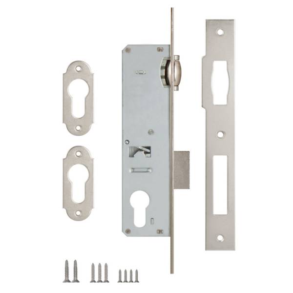Корпус замка KALE 155 врезной цилиндровый с роликовой защелкой предназначен для установки в двери из ПВХ и алюминиевого профиля.