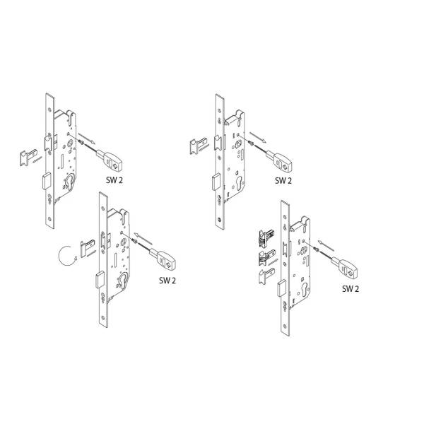 Замок без защелки, Удаление ключевого отверстия замка 30 мм. Межосевое расстояние 92 мм. Для ПВХ дверей