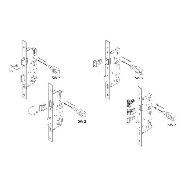 Замок без защелки, Удаление ключевого отверстия замка 35 мм. Межосевое расстояние 92 мм. Для ПВХ дверей