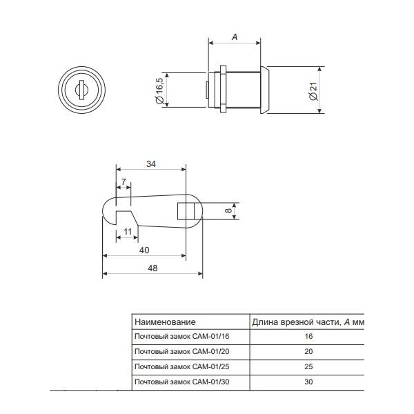 Технические характеристики САМ-01/16-NI Аверс: тип замка врезной; Длина врезной части 16 мм; Диаметр врезной части 16,5 мм; Диаметр врешней шляпки 21 мм; запирающая планка прямая; Цвет покрытия никель; упаковка - индивидуальный пакет; Количество в транспортной упаковке 300 шт.; в минибоксе 12 шт.