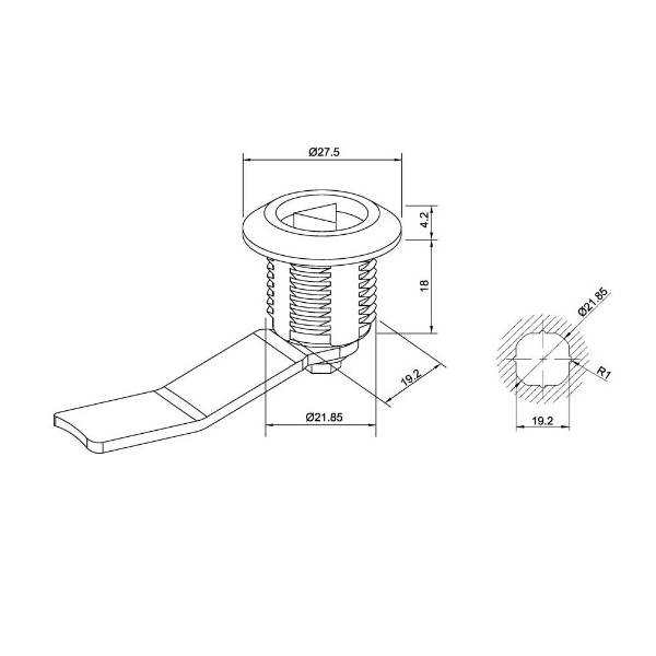 Замок щитовой MS-705-4 (треугольный ключ) ригель изогнут на 7 мм