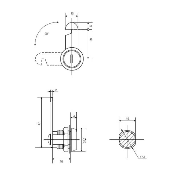 Замок мебельный 16 мм 90° ригель с вырезом с одной секретностью