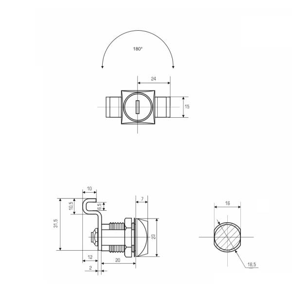 Замок почтовый 0802 20/180° ригель г-образный