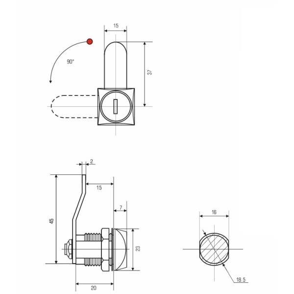 Замок мебельный 0802 20/90° н/в изогнут на 5 мм ключ не вынимается