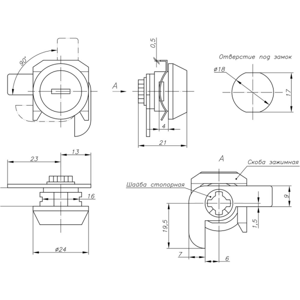 Замок мебельный для денежного ящика кассы SFT-2000 (24)