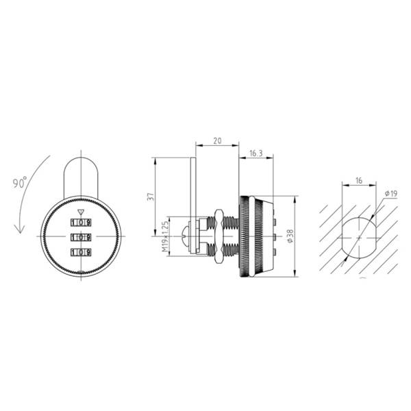 20 мм, 19 мм, 45 мм, прямой, 90°, гайкой, ключ не вынимается о обоих положениях, сплав ЦАМ, 1 шт, 1000 единиц, кодовый, 200 шт, 90, Китай, Вес единицы товара: 140 гр