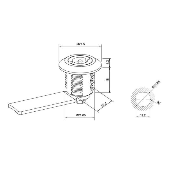 Замок щитовой MS-705-1 В (Ф-образный ключ) с ключом