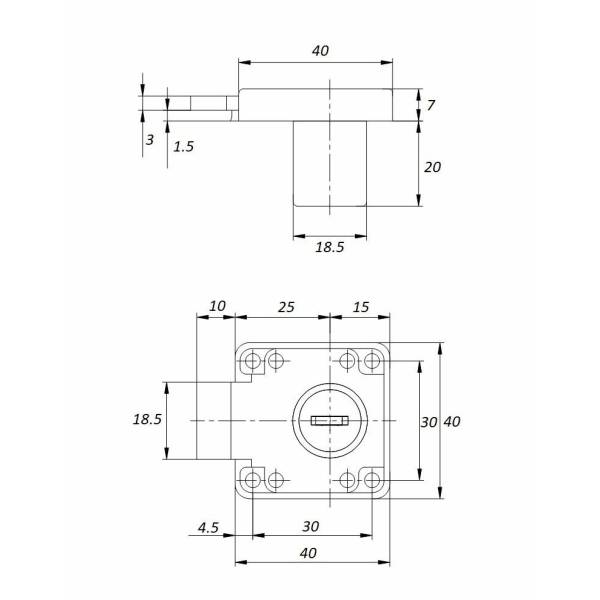 Замок мебельный предназначен для запирания мебельных распашных створок и ящиков. Для ДСП толщиной 16-18 мм.