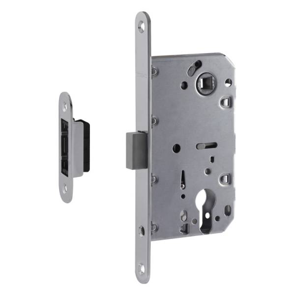 Корпус замка магнитный М 25М-85 мм под цилиндр с ответной планкой. Универсальный (подходит для межкомнатных дверей правого и левого исполнения). Межосевое расстояние - 85 мм. Комплектуется ответной планкой. Бесшумный магнитный механизм. Технические характеристики: Модификация ручка; Запорные эл-ты собачка; Кол-во ригелей нет; Сечение ригеля нет; Материал сталь/пластик. Корпуса замков торговой марки "Нора-М" изготовлены из стали и покрыты порошковой краской для дополнительной защиты от коррозии. Все корпуса замков, изготовленные под торговой маркой ?Нора-М? относятся к первому классу стойкости ко взлому, и поэтому не требуют обязательной сертификации.