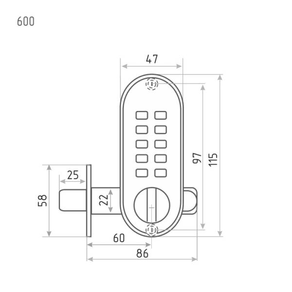 Механический накладной кодовый замок 600 без фиксатора Нора-М - компактный размер.