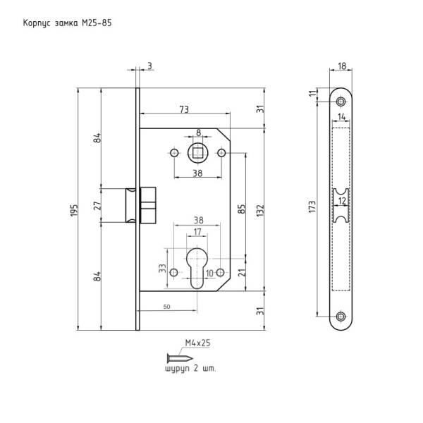 Универсальный корпус замка ЗЩ М25-85 устанавливается на межкомнатные двери и подходит как под правое, так и под левое открывание двери, т.е универсальный.