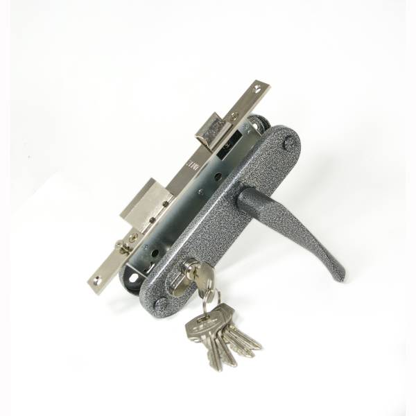 Защелка закрывается цилиндровым механизмом и ручкой.