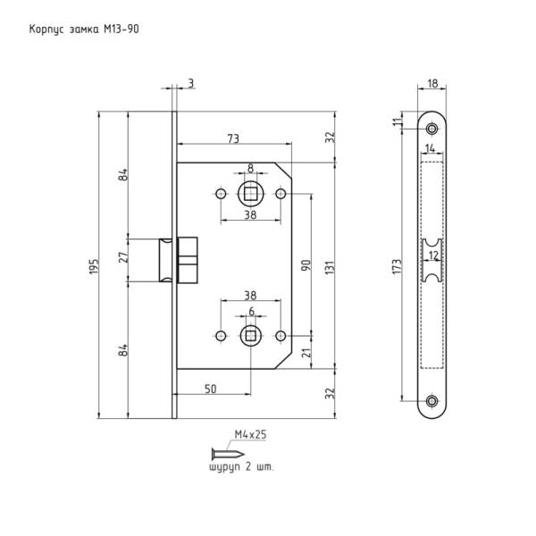 Корпус замка Нора-М ЗЩ М13-90 мм устанавливается с ручкой и фиксатором (комплектуется отдельно).