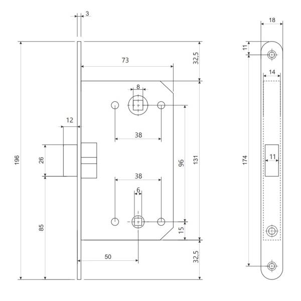 Технические характеристики: Межосевое расстояние 96 мм; Бэксет 50 мм; Классическая защелка.