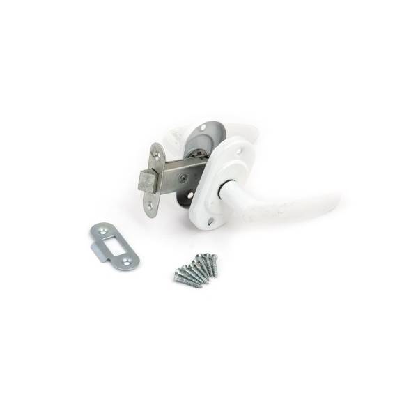 Защелка универсальная в комплекте с ручками для установки в деревянную дверь;