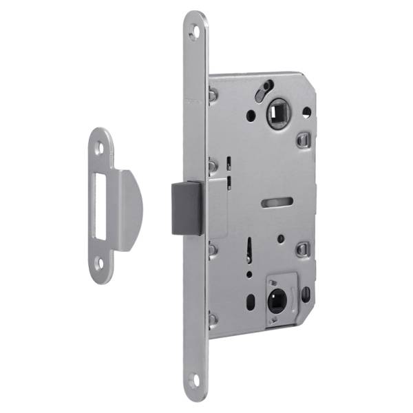 Корпус замка предназначен для установки на межкомнатные деревянные двери, комплектуется с накладкой под фиксатор. Чаще всего механизм врезного замка с фиксатором устанавливается на сантехнических дверях (в туалете, ванной, душевой). Межосевое расстояние 96 мм. Защитный корпус изготовлен из стали, имеет порошковое покрытие, обеспечивающий металлу дополнительную защиту от коррозии.