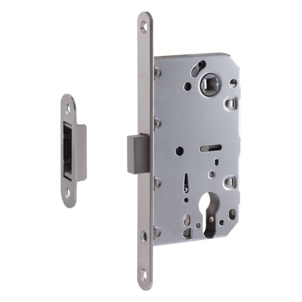 Корпус замка магнитный М 25М-85 мм под цилиндр с ответной планкой. Универсальный (подходит для межкомнатных дверей правого и левого исполнения). Межосевое расстояние - 85 мм. Комплектуется ответной планкой. Бесшумный магнитный механизм. Технические характеристики: Модификация ручка; Запорные эл-ты собачка; Кол-во ригелей нет; Сечение ригеля нет; Материал сталь/пластик. Корпуса замков торговой марки "Нора-М" изготовлены из стали и покрыты порошковой краской для дополнительной защиты от коррозии. Все корпуса замков, изготовленные под торговой маркой ?Нора-М? относятся к первому классу стойкости ко взлому, и поэтому не требуют обязательной сертификации.