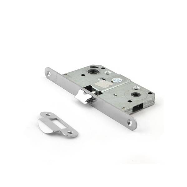 Защелка врезная Апекс 5300-WC-CR с металлическим язычком, для межкомнатных дверей устанавливается с дверными ручками на розетке в комплекте с сантехническим фиксатором.