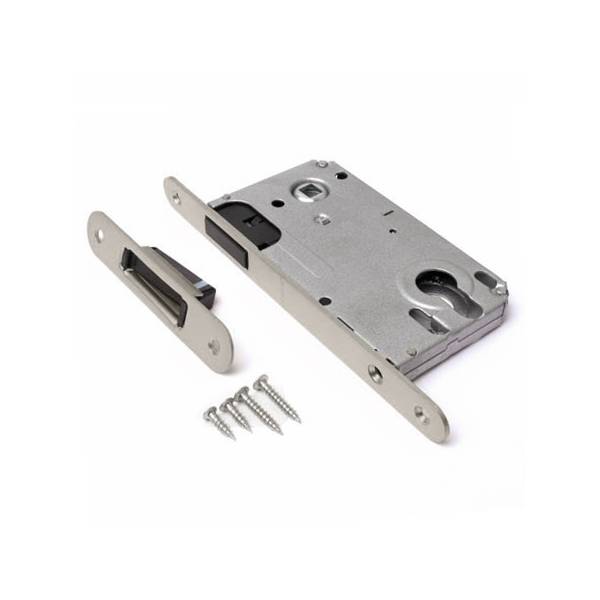 Классические межкомнатные замки и защёлки. Размеры корпуса идеальны для установки с дверными ручками на розетке в комплекте с накладкой на цилиндр или сантехническим фиксатором. Металлический язычок обеспечивает надежное запирание. Угол нажатия ручки: 30 градусов. Стойкое покрытие подходит для использования во влажных помещениях (ванная комната). Межосевое расстояние: 85 мм (евроцилиндр) / 90 мм (сувальдный) / 90 мм (фиксатор WC). 250 000 циклов безотказной работы. Соответствие ГОСТу подтверждено сертификатом.