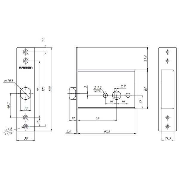 Защёлка врезная Гардиан 301 предназначена для установки, как в правые, так и в левые металлические и деревянные двери внутреннего и наружного открывания.