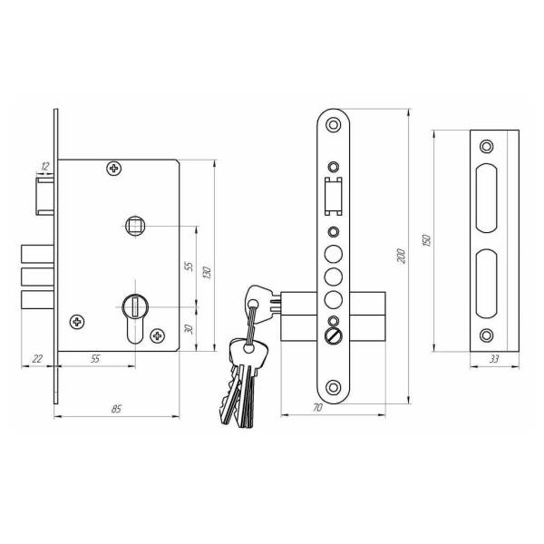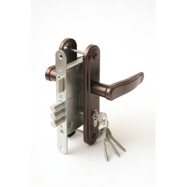 Замок врезной ЗВ4-3.03 (медь) Зенит. Замок врезной цилиндровый с защелкой и фалевыми ручками ЗЕНИТ. Предназначен для запирания входных деревянных и металлических дверей. Закрывается на засов и защелку, комплектуется двумя фалевыми ручками. Цвет фурнитуры золото; Толщина полотна двери 40-55мм; Материал исполнения корпуса сталь; Удаление ключевого отверстия (Backset) 55мм; Тип замка универсальный; Вид цилиндрового механизма двусторонний; Покрытие корпуса цинковое; Цвет лицевой и ответной планки белый цинк; Количество ригелей 1; Межосевое расстояние 55мм; Количество ключей 4; Тип ключа английский; Материал исполнения фурнитуры сплав алюминия; Покрытие фурнитуры полимерное; Длина цилиндрового механизма 70мм; Материал исполнения цилиндрового механизма силумин; Количество секретных комбинаций не менее 15000; Сечение отверстия под квадрат фалевых ручек 8 х 8мм; Величина выдвижения ригеля 22мм; Количество оборотов выдвижения ригеля 2.