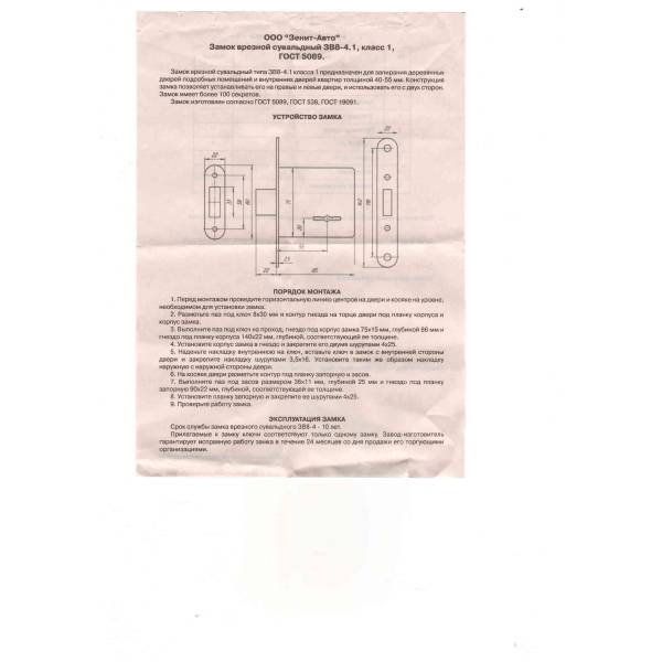 Срок службы замка врезного сувальдного ЗВ8-4 10 лет. Прилагаемые к замку ключи соответствуют только одному замку.