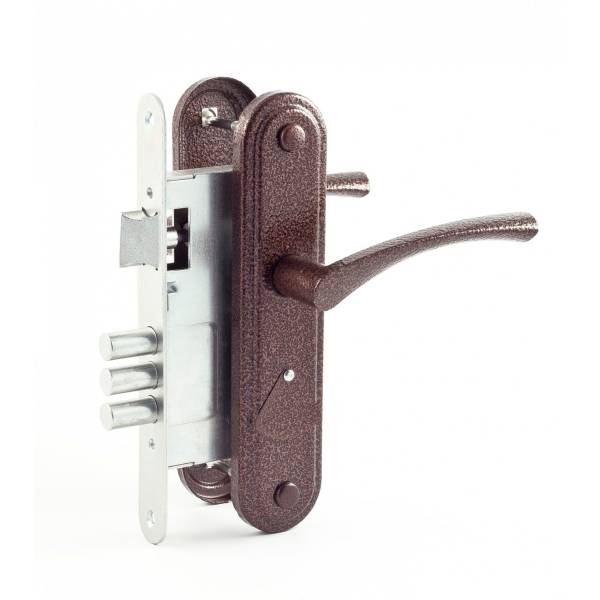 Замок врезной ЗВ 9-4.2 Зенит медь сувальдный с защелкой и фалевыми ручками класс 1 ГОСТ 5089.