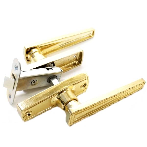 Комплектация ручками. Тип ручек защелки на планке. Цвет ручки золото. Покрытие ручек краска. Фиксация отсутсвует. Тип механизма защелки классический. Без покрытие лицевой планки. Удаление квадрата под ручку 54 мм.