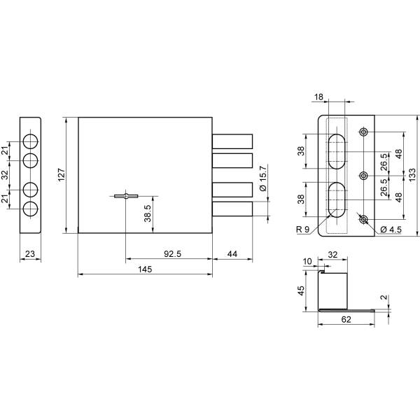 Корпус дверного замка накладной восьмисувальдный;