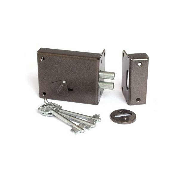 Замок накладной сувальдный Могилев ЗН 4СМ1-00. Тип ригелей цилиндрические. Количество ригелей 2. Защелка отсутствует. Удаление ключевого отверстия (Backset) 55 мм. Тип механизма секретности двернного замка сувальдный с двойной бородкой. Количество ключей 3 шт. Количество точек запирания 1. Способ запирания изнутри ключом. Наличие цепочки нет. Дополнительное запирание дверного замка изнутри отсутствует. Неавтоматическое запирание. Цвет корпуса замка коричневый.