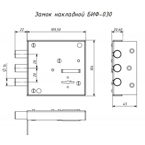Замок накладной 6-сувальдный предназначен для установки на деревянные и металлические двери, толщина полотна которых до 40мм. Замок ЗН БИФ-030 Симеко универсальный, т.е. устанавливается без переналадки на правые и левые двери.