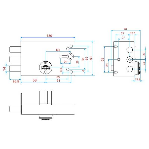 Замок накладной 1.02.61.5.1.1.МА Лазурит (с задвижкой) Эльбор без запорной коробки.
