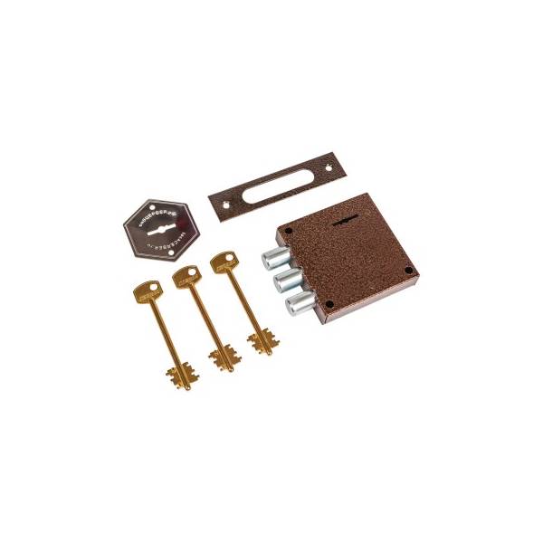 Накладной замок Цербер СГ-720 016 - сувальдный трехригельный замок 2го класса защиты, сертифицирован по ГОСТ 538-14, ГОСТ 5089-2011, предназначен для цельнодеревянных и металлических дверей.