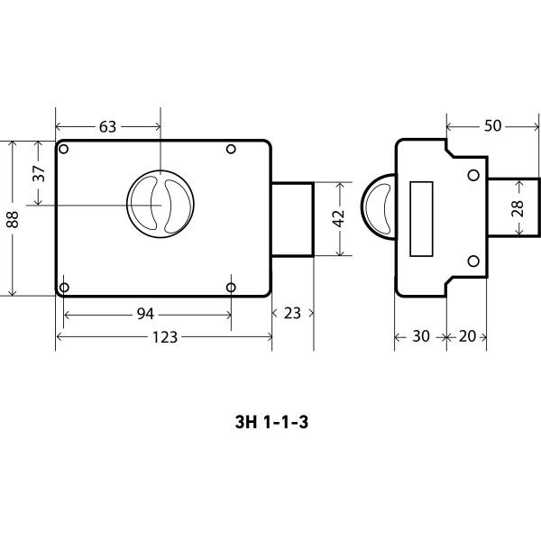 Накладной замок Аллюр ЗН 1-1-2 , цилиндр совместный с корпусом.