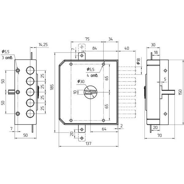Габаритные размеры корпуса дверного замка: 150х137х30 мм;